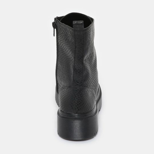 Bota militar tipo Dr. Marteens con diseño liso en textura de cocodrilo y agujeta en todo el frente