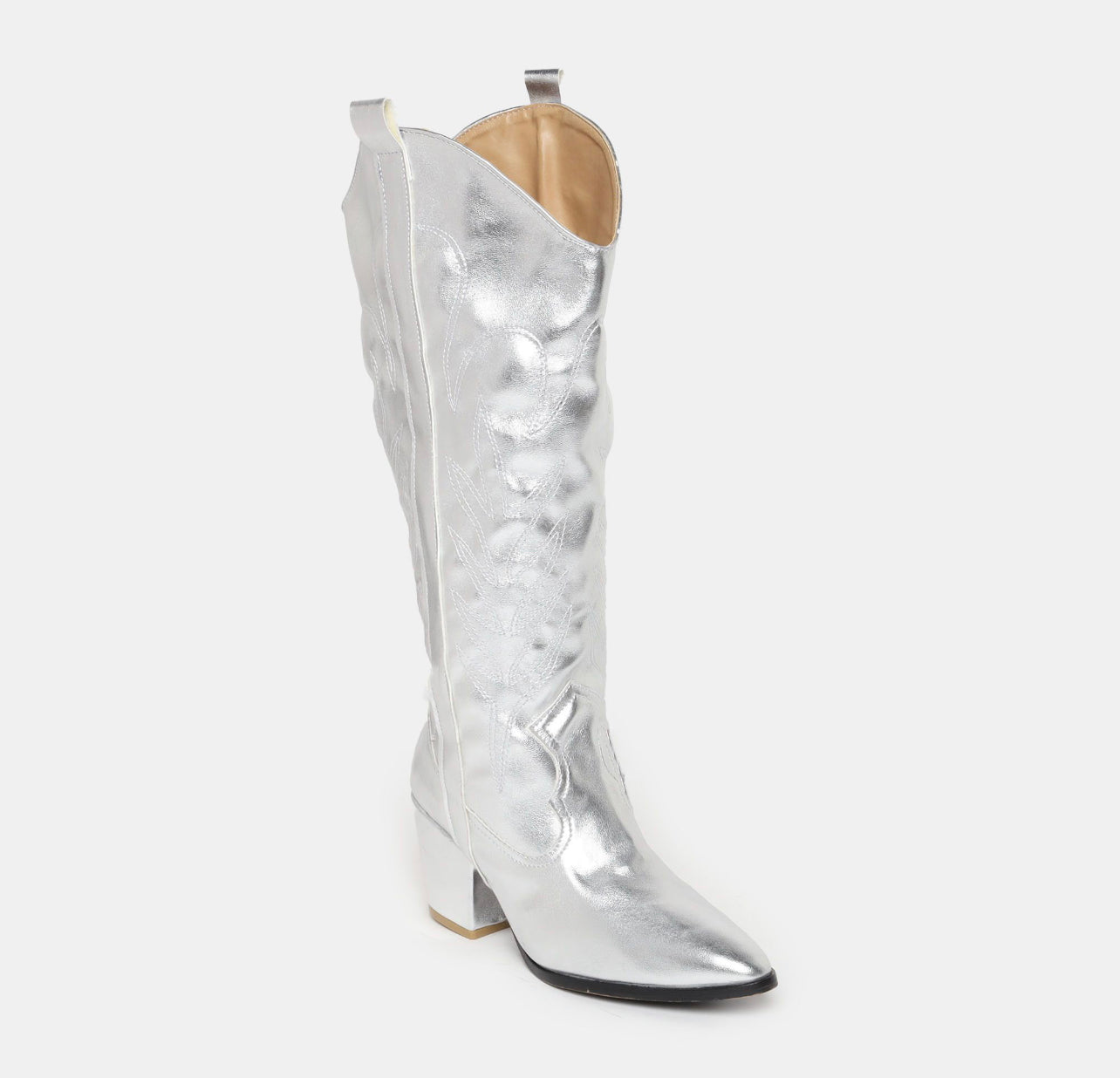 Cowboy Boot de tubo alto, abajo de la rodilla, costura en tubo y tacón vaquero ancho de 6 cm