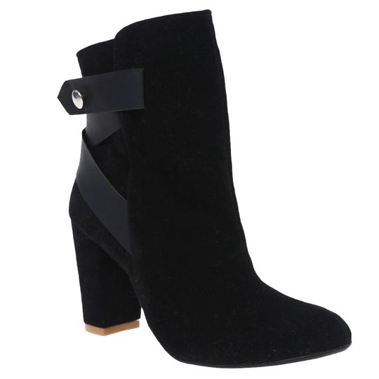 Botín con tacón ancho y tiras cruzadas que abrochan a un costado